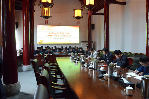 3月29日下午,鹿邑縣委辦公室黨支部召開(kāi)2018年度組織生活會(huì)并開(kāi)展民主評(píng)議黨員活動(dòng)??h委書(shū)記梁建松,縣委常委、辦公室主任宋濤以一名普通黨員身份參加會(huì)議??h委辦公室機(jī)關(guān)全體同志參加會(huì)議。