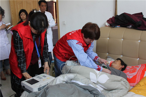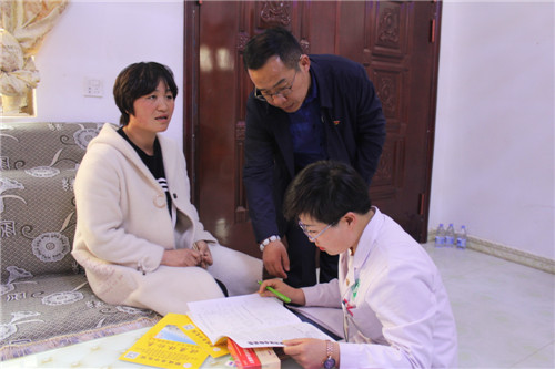 在王崗家中,專家們先后為王崗父母、妻子進行了彩超、心電圖、血壓、血糖等項目檢查,并根據(jù)檢測數(shù)據(jù),現(xiàn)場分析、研究病情,做了詳細(xì)醫(yī)囑,還為他們送了包含各種項目的健康體檢表。