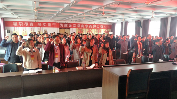 開班之前,縣領導和全體學員舉起右手、握緊拳頭,在鮮紅的黨旗下,重溫了入黨誓詞。