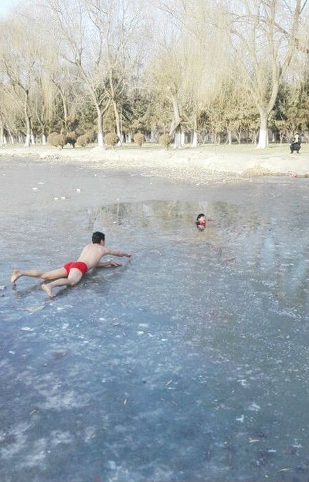 去年1月1日,甘肅省金昌市龍泉公園內一名6歲男孩墜入湖中冰窟。在附近游玩的王保華見狀,毫不猶豫地脫掉厚重的冬衣,只剩一條紅褲頭,躬身走上了冰面。接近男孩時,他匍匐在冰面上,在同伴的幫助下,奮力把編好的藤條遞向在水中掙扎的男孩 。在其他愛心人士的共同幫助下,男孩最終獲救,而王保華與同伴悄悄離開了。事后,中央電視臺等媒體紛紛報道了此事,一時間,“紅褲頭”救人的事跡,在那個寒冷的冬天引起了強烈反響。