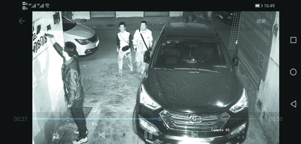監(jiān)控視頻顯示,4月13日3時21分,3名男子來到項城市仁和街一家屬院門前,分別在墻上涂畫小廣告。