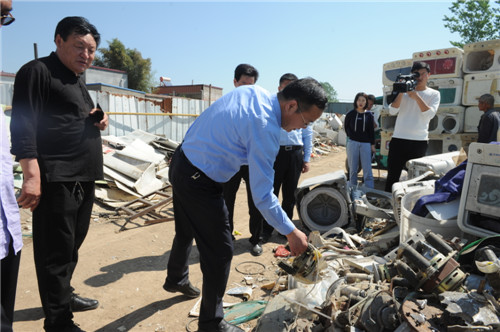 在許灣鄉(xiāng)美麗鄉(xiāng)村建設(shè)項目現(xiàn)場,張建黨要求建設(shè)方要在保證建設(shè)質(zhì)量的前提下加快建設(shè)速度,按政策規(guī)定進行征地工作,切不可違規(guī)施工、經(jīng)營。在大葉莊廢品收購站,張建黨要求,收購站圍擋要高,內(nèi)部及大門口路面要進行硬化,確保不出現(xiàn)揚塵,減少污染,內(nèi)部容易造成污染的部位要按環(huán)保要求進行覆蓋。在雙閣村安置點,張建黨要求,施工方要加快進度、規(guī)范施工,做到善始善終。施工道路要清理,盡量避免污染,嚴(yán)格按環(huán)保要求達(dá)到六個百分百。