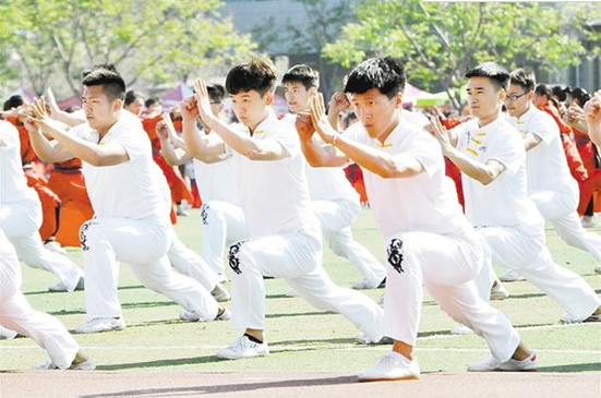 4月18日上午,周口師范學(xué)院第十五屆田徑運(yùn)動(dòng)會(huì)開幕,來(lái)自該校各個(gè)學(xué)院的數(shù)千名學(xué)子投入運(yùn)動(dòng)會(huì)健身活動(dòng)中。700多名大學(xué)生在運(yùn)動(dòng)會(huì)上集體表演了心意六合拳,受到觀眾熱捧。記者 梁照曾 攝