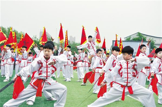 5月18日上午,為期一周的商水縣2019年“全民健身月”系列活動啟動。據(jù)悉,系列活動期間,該縣將舉辦“縣長杯”中學生足球賽、“萬步有約”職業(yè)人群健走、中小學生陽光體育運動會、周口市第四屆鞭陀交流賽等活動,全縣共有66支代表隊5000余人參與其中。圖為啟動儀式上的節(jié)目展演。記者 付永奇 攝