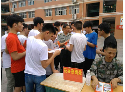 5月25日,淮陽縣征兵政策宣講團進校入班,對全縣六所高中學(xué)校開展宣講活動。效果明顯,當(dāng)場有參軍意向高學(xué)歷青年報名,人數(shù)成倍增長,周口軍分區(qū)副司令員薛振喜看到這一喜人的成果后說:“大學(xué)生征兵政策宣傳進村入戶進校園入班級這個做法好。”
