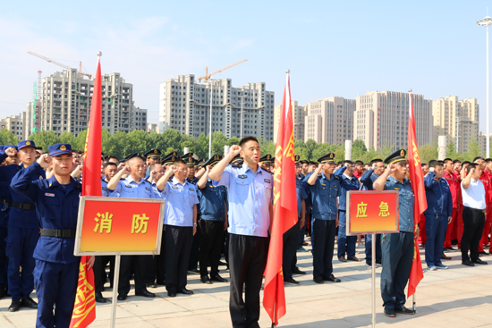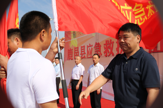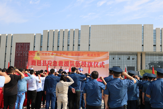 5月30日上午,鹿邑縣在縣文化中心廣場舉行應(yīng)急救援隊授旗宣誓儀式,縣委常委、常務(wù)副縣長陸志杰現(xiàn)場為全縣新整合的15支專、兼職應(yīng)急救援隊伍授旗,各應(yīng)急救援隊伍在推選代表的帶領(lǐng)下,共同舉起右手進行了莊嚴(yán)的宣誓儀式。