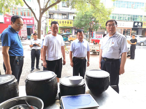 在新城路沿街門店,馬衛(wèi)東邊走邊看邊聽取有關負責人的情況介紹,對存在和現(xiàn)場發(fā)現(xiàn)的的問題逐一梳理分析,并及時 提出整改意見。
