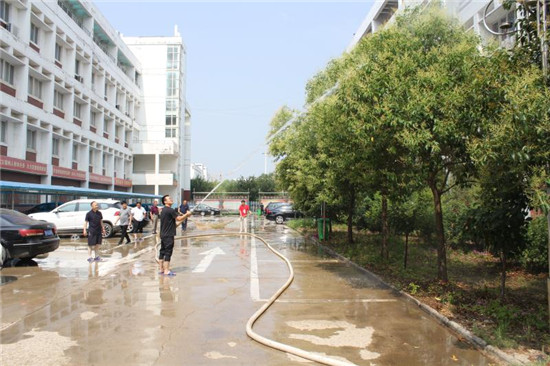雖然天氣炎熱,大家汗流浹背,卻熱情高漲,積極性很高,大家紛紛拿起掃帚、抹布,提上水桶,充分發(fā)揚不怕臟、不怕累的精神,對院內(nèi)道路、車棚、宣傳欄、綠化帶等處進行沖洗、清掃,同時對各樓層門窗玻璃、消防栓、廁所等進行集中清理……經(jīng)過兩個多小時的辛勤勞動,各辦公室窗明幾凈,廁所衛(wèi)生干凈整潔,車棚車輛擺放整齊,院內(nèi)環(huán)境煥然一新。