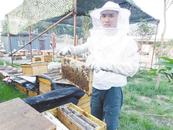 6月24日,沈丘縣付井鎮(zhèn)九里村的退伍軍人蘇尚方,正小心翼翼地從蜂箱里取出蜂蜜板,準備采收蜂蜜?!拔茵B(yǎng)了120多箱蜜蜂,年產(chǎn)蜂蜜3000多公斤,經(jīng)濟收入十分可觀。”蘇尚方說,他專門成立了蘇家養(yǎng)蜂專業(yè)合作社,帶領當?shù)刎毨粢黄鹈撠氈赂弧Vx辛凌 攝