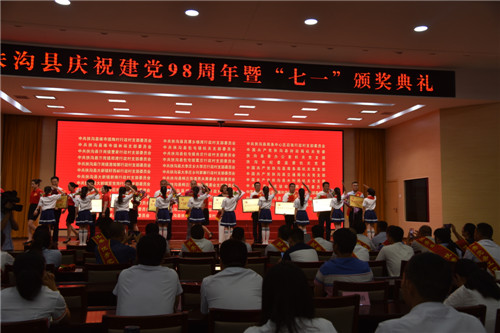 頒獎(jiǎng)典禮共表彰優(yōu)秀共產(chǎn)黨員99名、優(yōu)秀黨務(wù)工作者60名、先進(jìn)黨組織73個(gè)。少先隊(duì)員為優(yōu)秀代表頒獎(jiǎng)。