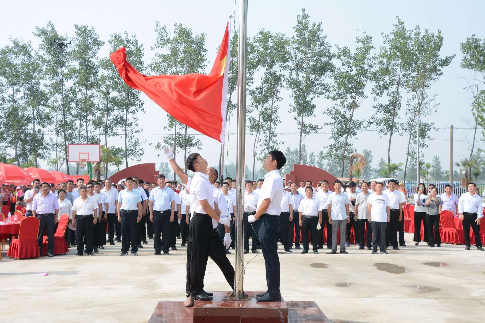 活動(dòng)在莊嚴(yán)的升國旗儀式中拉開帷幕。由紀(jì)莊黨支部護(hù)旗手昂首闊步,迎著朝陽、護(hù)著國旗走向升旗臺(tái),在場全體黨員、干部、群眾注視下,伴隨著震撼人心、氣勢磅礴的國歌完成了升旗儀式。