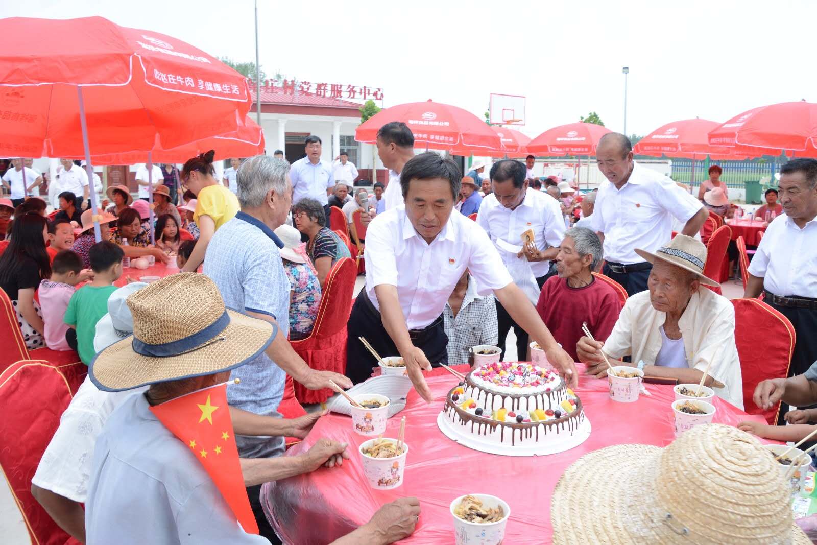 文藝演出結(jié)束后,參會(huì)黨員群眾歡聚一堂,共進(jìn)午餐。紀(jì)莊村黨支部書記攜全體黨員干部共同為當(dāng)月過生日的老黨員史海汕同志送上生日蛋糕,并一起聆聽老黨員的心路歷程,史海汕同志感慨地表述:“我在紀(jì)莊村生活了78年,這是我過的最好的一次生日,通過匯演我看到了鎮(zhèn)全體黨員、干部群眾們的愛國、愛黨、愛崗情懷,雖然我老了,可我的初心依舊,我愿為中國共產(chǎn)黨奮斗終身,為我們紅花集鎮(zhèn)鄉(xiāng)村振興添磚加瓦?!?/p>