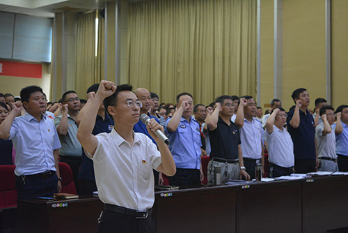 上午9點,會議在國歌聲中開幕。會上,開發(fā)區(qū)黨委對先進(jìn)基層黨組織、優(yōu)秀基層黨支部書記、優(yōu)秀共產(chǎn)黨員、優(yōu)秀黨務(wù)工作者和學(xué)習(xí)標(biāo)兵進(jìn)行表彰。全體與會人員面向黨旗,重溫入黨誓詞。黨委書記王文峰為大家上黨課。