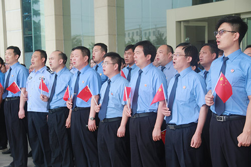 “沒有共產(chǎn)黨就沒有新中國,沒有共產(chǎn)黨就沒有新中國,共產(chǎn)黨,辛勞為民族,共產(chǎn)黨他一心救中國……”音樂響起那一刻,西華縣檢察院全體干警莊嚴(yán)站立,他們內(nèi)心澎湃,他們?yōu)樽约菏侵腥A兒女的一員而自豪。