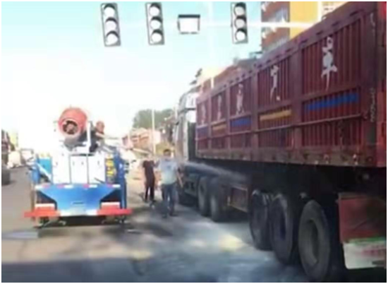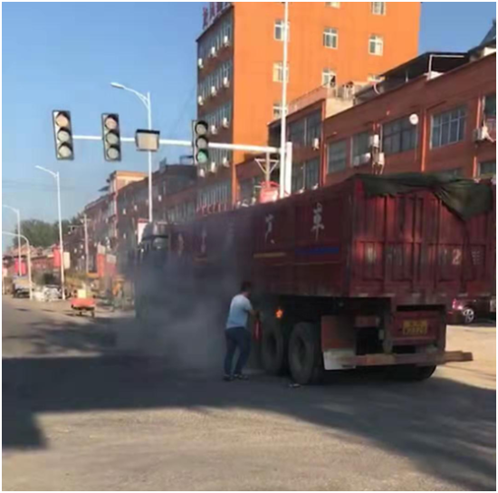 7月6日早上6時(shí)40分,一輛貨車由東至西行駛到西扶超限檢測(cè)站負(fù)責(zé)的環(huán)保檢測(cè)卡點(diǎn)時(shí)輪胎突然起火,執(zhí)法人員發(fā)現(xiàn)后,立即用車載喇叭喊話提醒司機(jī)停車,此時(shí)車輛正好停在值勤卡點(diǎn)紅綠燈處,一旦火勢(shì)不受控制,將給司機(jī)及周邊群眾帶來(lái)不可預(yù)測(cè)的危險(xiǎn)與損失,帶班站長(zhǎng)李建東一邊組織人員進(jìn)行救火,一邊通知站長(zhǎng)劉洪亮。得到警情后,劉洪亮站長(zhǎng)立即組織增援,同時(shí)指令張光輝、劉伯倫駕駛站內(nèi)高壓撒水車迅速趕往事故現(xiàn)場(chǎng),經(jīng)過共同努力,著火處被撲滅,避免了一場(chǎng)火災(zāi)事故的發(fā)生。事后,貨車司機(jī)十分感動(dòng),拉著執(zhí)法人員的手深表謝意。