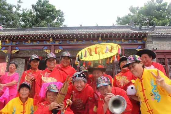 歡快的音樂(lè)響起,一群群老人們載歌載舞,翩翩而來(lái)。她們有的劃著旱船,有的揮著鞭子,有的叼著煙斗,有的抬著轎子,一招一式,都是那么專(zhuān)業(yè)。