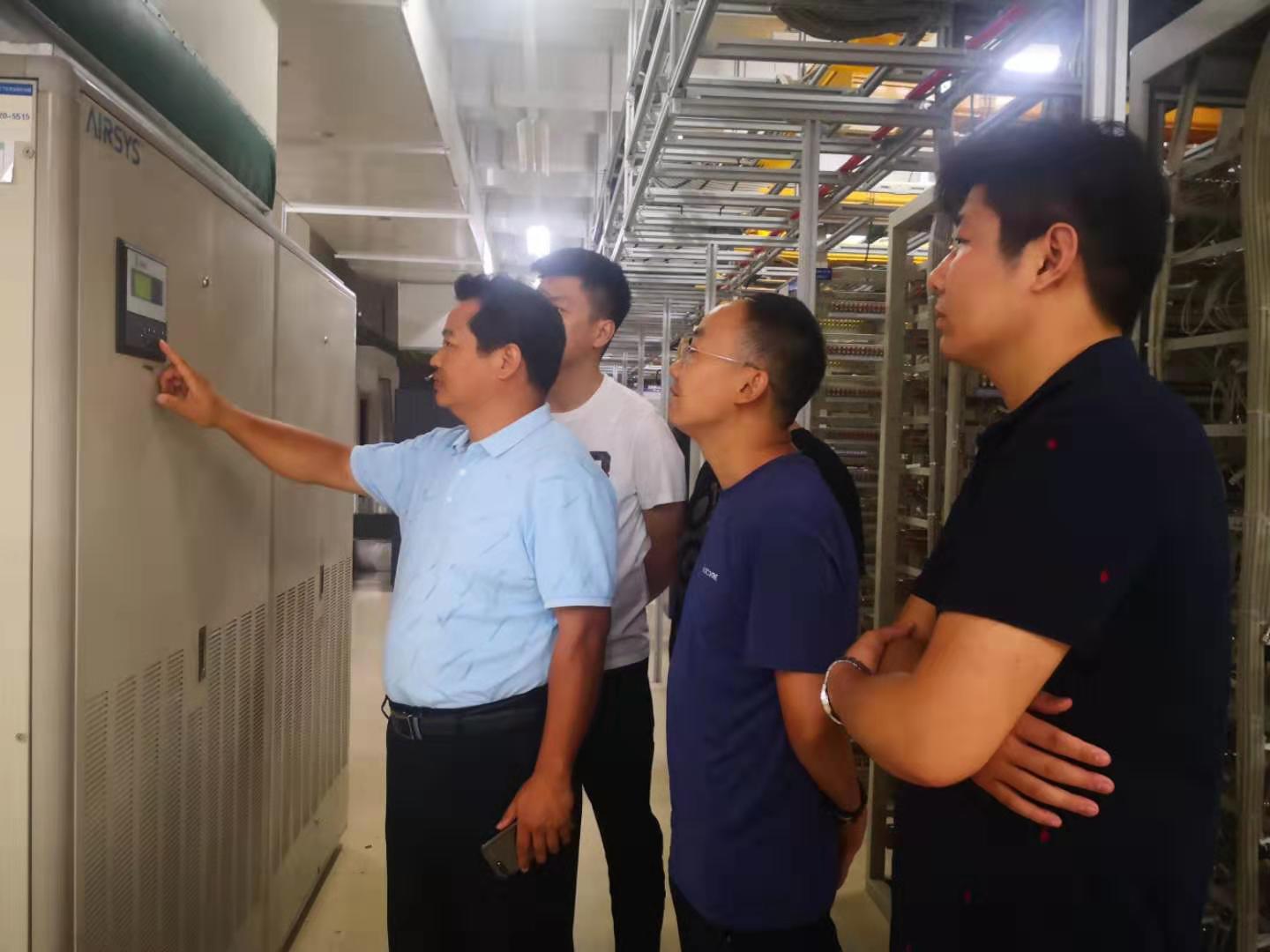郭彥軍(左一)和同事們在查看空調加濕系統