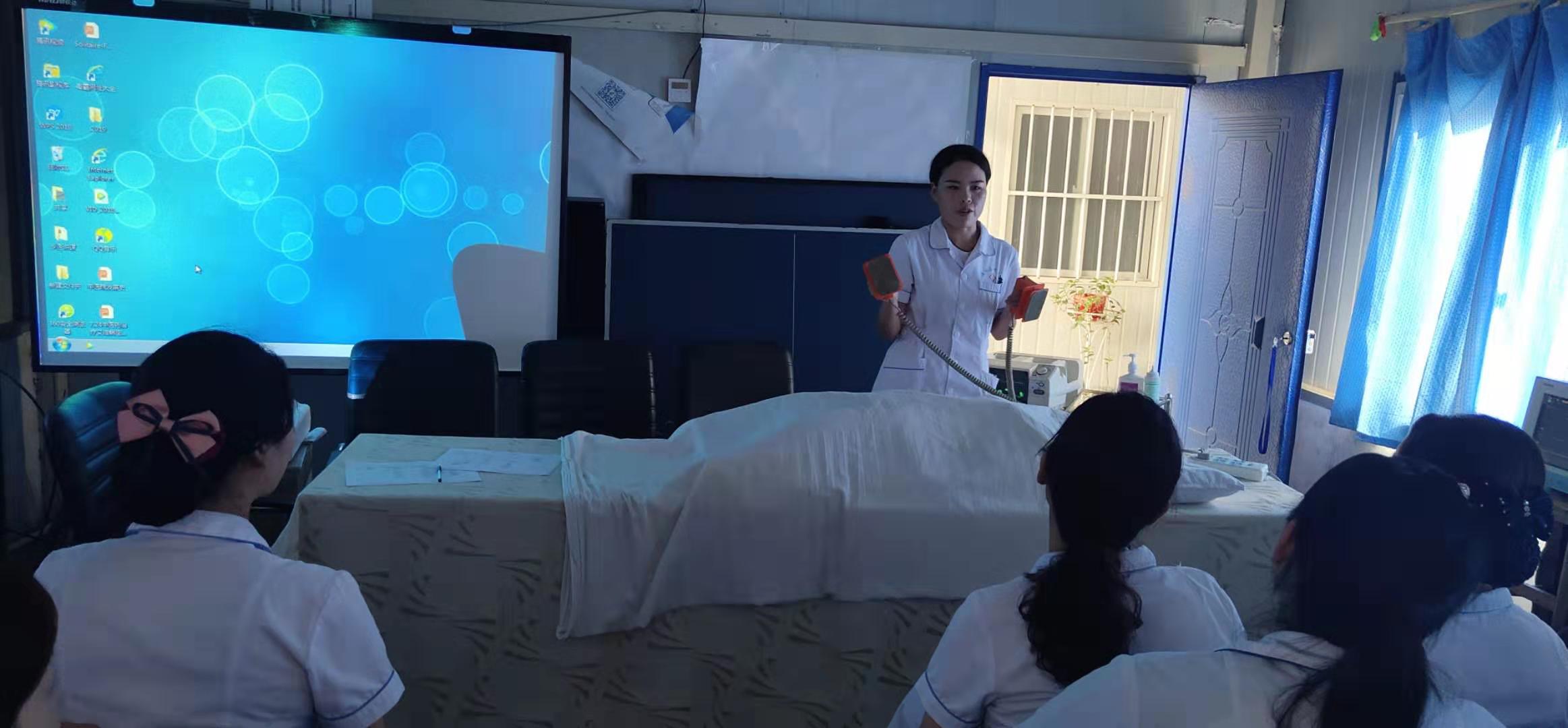 培訓由縣中醫(yī)院ICU護士崔陽陽以及ICU護士趙勤進行理論授課及實操演練。