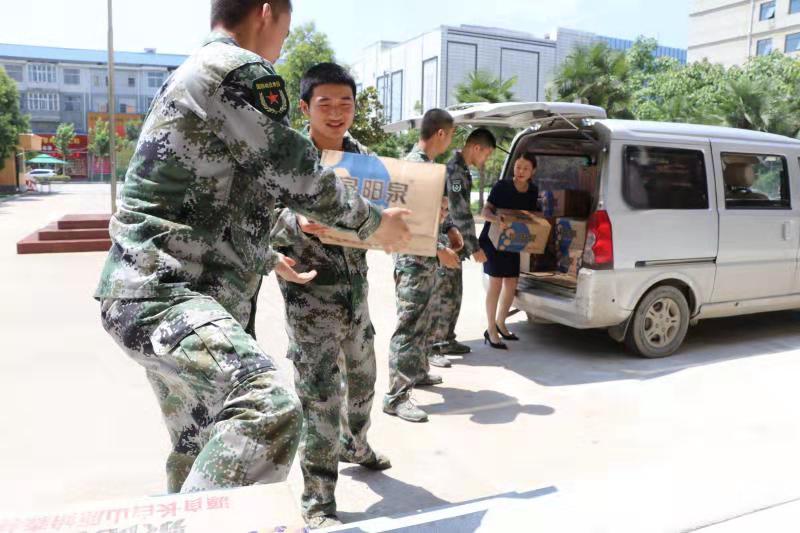 打開車門,在李丹的組織下,幾名預(yù)備役士兵一字排開,一件件礦泉水被從車上卸下來,擺放到門廳下。“這天太熱了,來兄弟,先喝點礦泉水解解渴。”李丹一邊給士兵們發(fā)放礦泉水,一邊心疼地說。