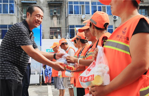 7月30日,扶溝縣總工會為酷暑堅(jiān)守一線崗位的公安交警,環(huán)衛(wèi)工人,紡織工人,安保公司、美團(tuán)外賣、申通快遞等企業(yè)公司工人送上礦泉水、洗潔精、毛巾等防暑降溫物品,受到歡迎。