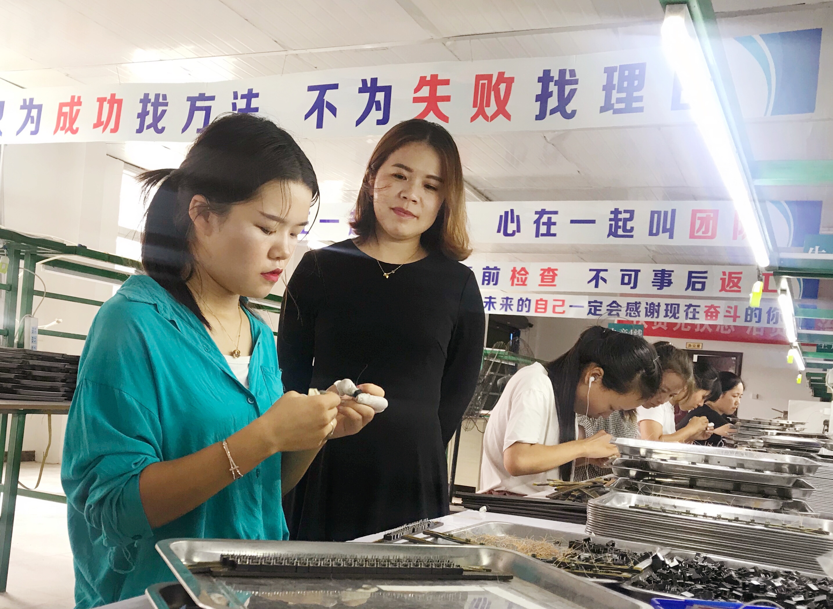 河南雙晨電子科技有限公司去年落戶西華縣大王莊鄉(xiāng)劉老家村后,生產(chǎn)線安裝繞線機(jī)、點(diǎn)焊機(jī)、包裝機(jī)等近50臺,產(chǎn)品廣泛用于液晶顯示屏、計(jì)算機(jī)、數(shù)碼相機(jī)、醫(yī)療設(shè)備、汽車等,目前已安置群眾就業(yè)50余人,其中貧困戶近20人,人月均收入3000多元,讓村民在家門口實(shí)現(xiàn)就業(yè)增收。圖為該公司總經(jīng)理在生產(chǎn)車間了解工人收入和家庭生活情況。