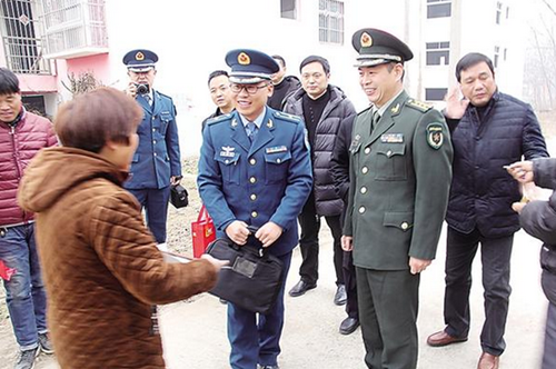 項城市人武部政委汪燦輝為立功受獎戰(zhàn)士家庭送喜報
