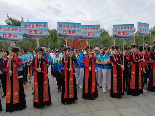 8月20日上午,2019年全國老年人持杖健走交流活動在內蒙古烏海市開幕,吸引了來自全國38支代表隊的652名持杖健走愛好者參加。我市老年人體育協會共選派10名愛好者參賽。圖為我市持杖健走愛好者正在進行戶外穿越項目的交流。