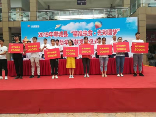 本次“精準(zhǔn)扶貧·光彩圓夢(mèng)”由縣萬洋集團(tuán)慷慨解囊、傾情相助,共捐資20萬元,對(duì)100名品學(xué)兼優(yōu)的貧困學(xué)子給予資助,為鄲城的教育事業(yè)增光添彩。