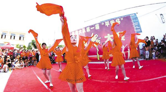 8月25日下午,市城鄉(xiāng)一體化示范區(qū)許灣鄉(xiāng)彭樓行政村文化廣場(chǎng),舞姿婀娜,鼓聲雷鳴,笑語盈盈,該村千名農(nóng)民以廣場(chǎng)舞大賽的形式,喜迎新中國70華誕和即將到來的中國農(nóng)民豐收節(jié)。記者 梁照曾 攝