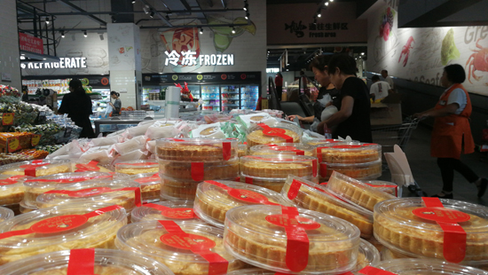 8月26日,市民在中心城區(qū)七一路與中州大道交叉口附近的一座大型超市里選購月餅。