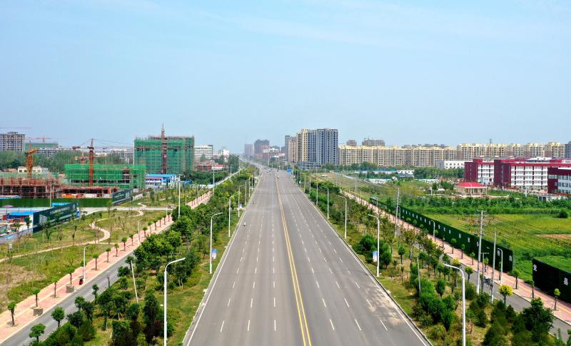 城市橫向主干道新華路,華燈矗立、車流如織,郁郁蔥蔥、生態(tài)廊道,游園點(diǎn)綴、多姿多彩,商賈云集、坐擁繁華。