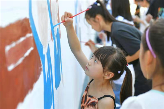 活動(dòng)現(xiàn)場,參與者們從設(shè)計(jì)構(gòu)圖到勾勒輪廓,從調(diào)制顏料到搭配色彩,每一個(gè)步驟、每一道工序都一絲不茍。大家圍繞“禮贊新中國 歌頌新時(shí)代”這一主題,在近百米長的墻面上認(rèn)真作畫,只見現(xiàn)場參與者工筆勾線、揮毫上色,經(jīng)過一個(gè)多小時(shí)的創(chuàng)作,“社會(huì)主義核心價(jià)值觀”“中國夢”“市民文明公約”等愛國元素躍然墻上……內(nèi)容豐富、形式多樣,一幅幅作品色彩明快、質(zhì)樸純?nèi)?,充分展示了書畫志愿者們對祖國和家鄉(xiāng)的熱愛,對藝術(shù)的追求和對美好生活的向往,宣傳了中國傳統(tǒng)書畫藝術(shù),提升了新時(shí)代文化自信,為該縣美術(shù)愛好者帶來了一場藝術(shù)盛宴。