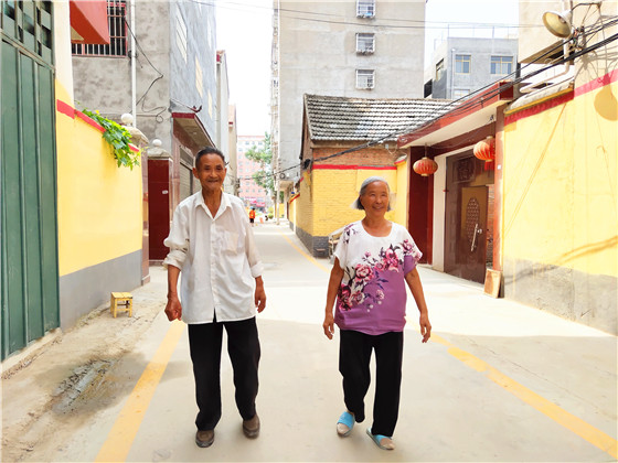 “我88(歲)了、她81(歲)了,四代同堂,在這住一輩子了?,F(xiàn)在是最漂亮、最干凈的時(shí)候了。俺兩口都是監(jiān)督員,感謝黨哩政策好呀?!痹谙那f社區(qū)居住的建筑公司退休工人張守振和老伴王秀榮滿心歡喜地感黨恩、樂(lè)享幸福生活。