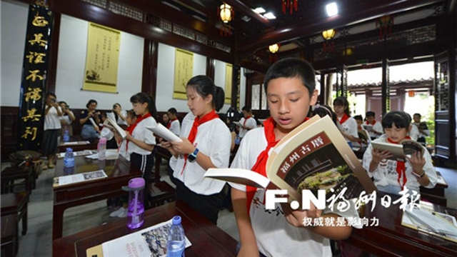 19日上午,由福州日?qǐng)?bào)和福州市教育局聯(lián)合舉辦的“探訪(fǎng)總書(shū)記牽掛的福州古厝”夏令營(yíng)活動(dòng)在鰲峰書(shū)院?jiǎn)?dòng)。