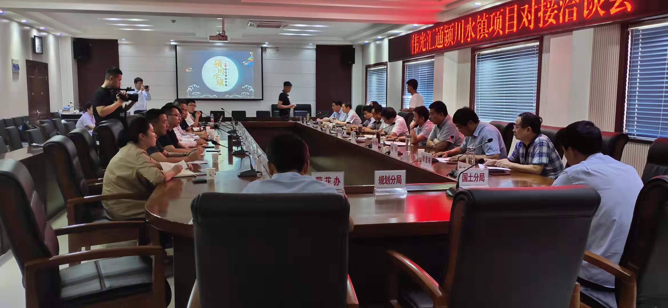 會議播放了偉光匯通企業(yè)宣傳片,聽取了潁川水鎮(zhèn)項目概念性策劃方案介紹。雙方圍繞潁川水鎮(zhèn)項目進行了深入洽談交流。
