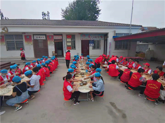 當天上午,一場由周口市紀委監(jiān)委駐杜崗村工作隊聯合紅花鎮(zhèn)、杜崗村、周口北斗達教育集團共同舉辦的孝老餃子宴,在該村文化廣場別開生面地拉來序幕?!按謇锼?0歲(含60歲)以上的老人今天中午都到文化廣場來吃餃子啊,市紀委和愛心企業(yè)來為我們包餃子啦……”8時剛過,杜崗村黨支部書記李長青就通過村里的大廣播每隔半小時播報一次,生怕哪位老人忘了這檔子事兒。