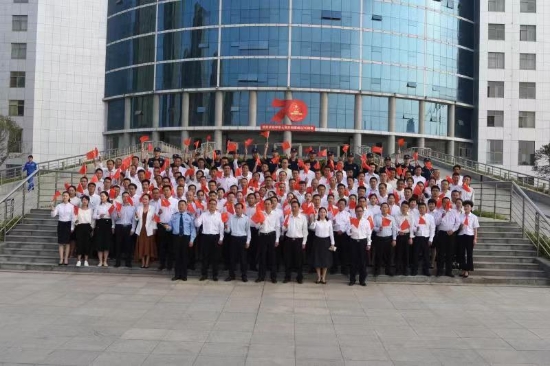隨后,開發(fā)區(qū)黨委班子成員、開發(fā)區(qū)中層干部、普通黨員代表、教師黨員代表、消防隊員等200多人手執(zhí)國旗,齊聲合唱《我和我的祖國》《團結就是力量》等歌曲,展示開發(fā)區(qū)人昂揚向上的精神風貌,熱烈慶祝新中國成立70周年。