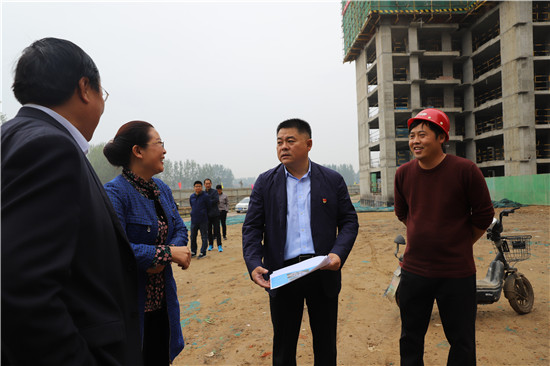 在未來(lái)家園四期項(xiàng)目建設(shè)工地,孫紅偉一行詳細(xì)聽取了施工單位負(fù)責(zé)人對(duì)項(xiàng)目施工現(xiàn)場(chǎng)情況的介紹,針對(duì)項(xiàng)目工地現(xiàn)場(chǎng)施工安全、環(huán)保要求,衛(wèi)生環(huán)境治理、項(xiàng)目觀摩展板設(shè)計(jì)、擺放等問(wèn)題,孫紅偉現(xiàn)場(chǎng)提出意見和要求。