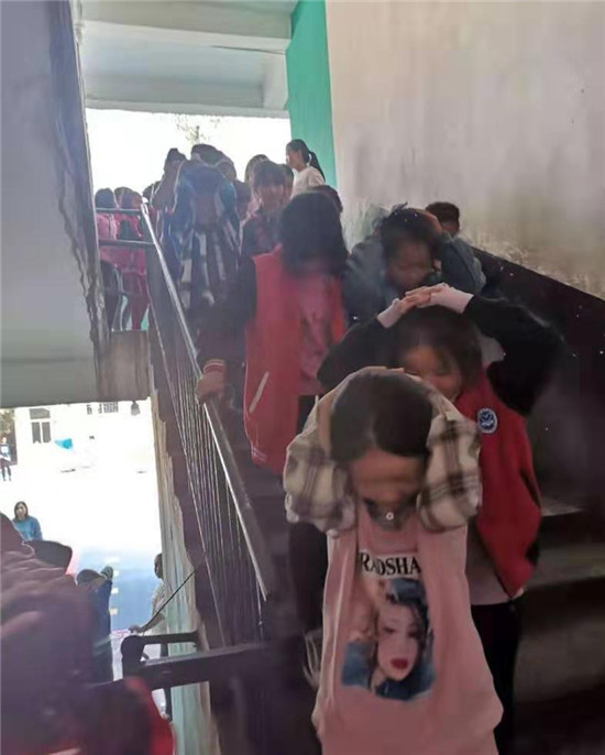 當(dāng)日9時許,一陣急促的警報聲在該校園內(nèi)響起,防震防踩踏緊急疏散安全演練活動正式拉開帷幕。各小組成員按照演練方案要求迅速到達各自負責(zé)的指定位置,同學(xué)們在班主任老師的引導(dǎo)下,雙手抱頭或用書包、書本護住頭部,迅速并安全有序地向操場撤離,班主任集結(jié)隊伍,清點人數(shù)并向演練指揮組報告撤離情況。整個演練過程反應(yīng)迅速、協(xié)調(diào)統(tǒng)一,共計用時6分20秒。