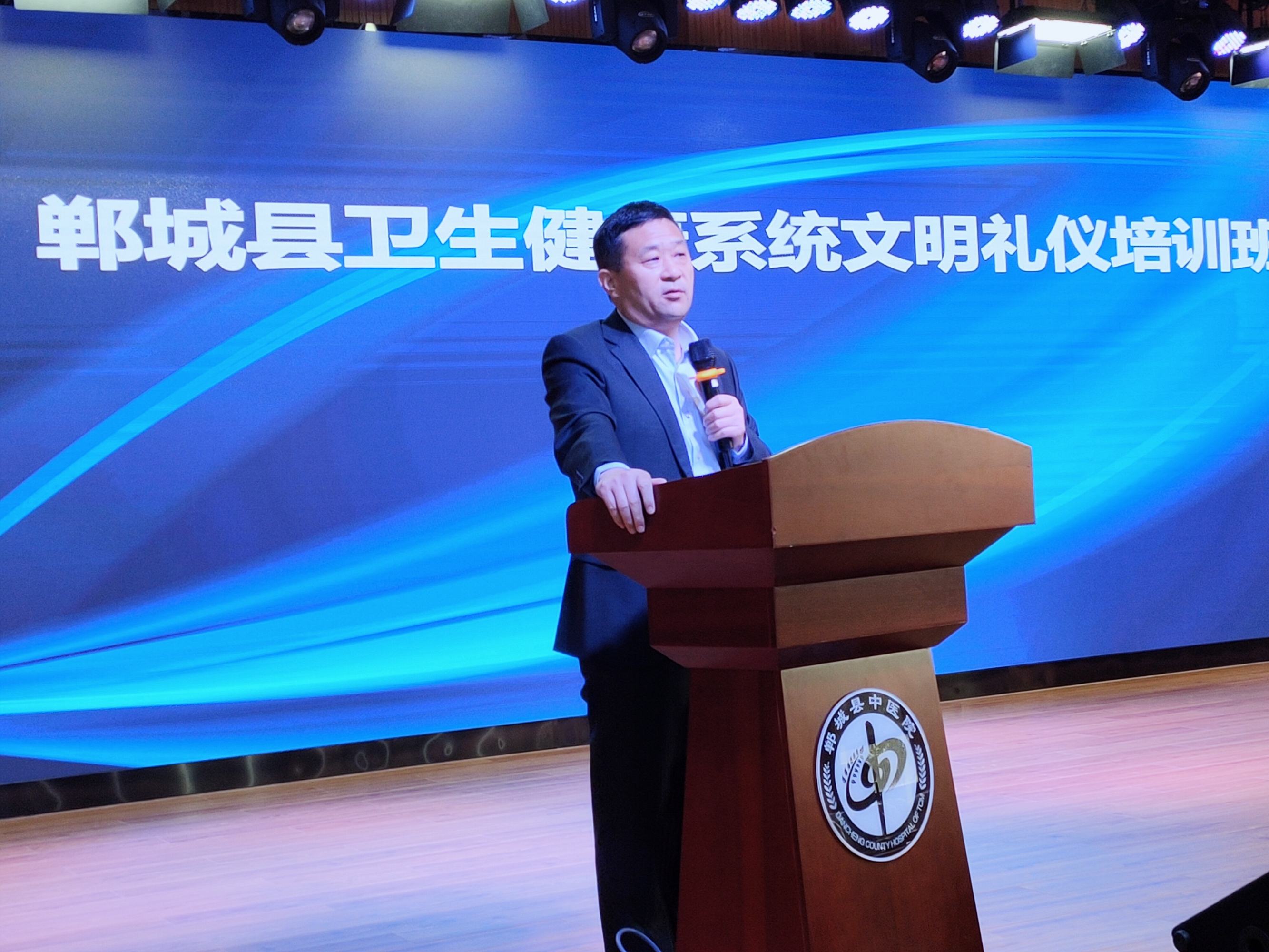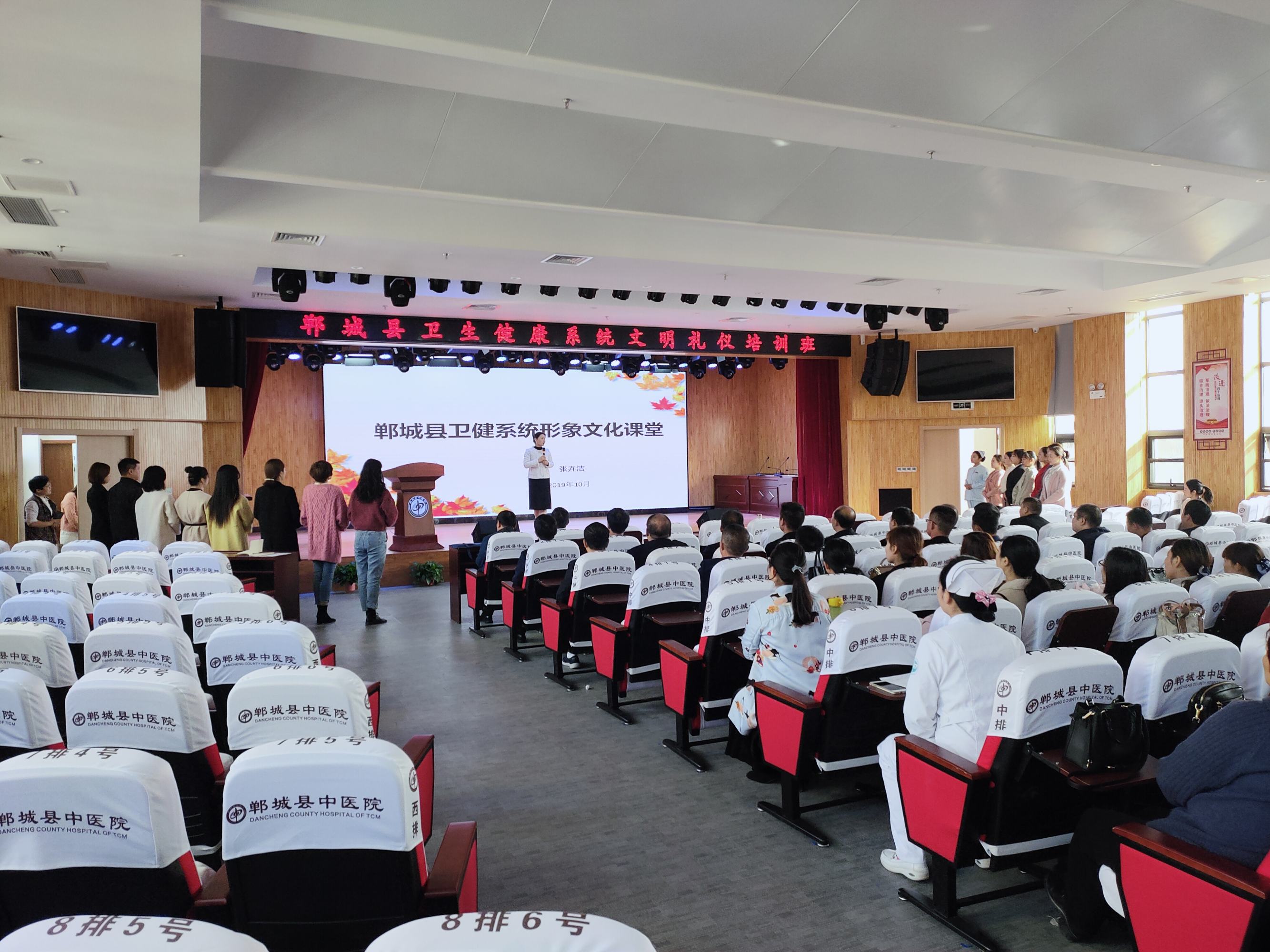 為一步提升全縣衛(wèi)健系統(tǒng)醫(yī)護人員綜合素質(zhì),打造鄲城衛(wèi)健系統(tǒng)形象新名片,10月28日,鄲城縣衛(wèi)健委在縣中醫(yī)院學(xué)術(shù)報告廳舉辦衛(wèi)健系統(tǒng)文明禮儀培訓(xùn)班。四家醫(yī)療健康服務(wù)集團分管醫(yī)改、健康促進、健康扶貧副院長、護理部主任、護士長,各鄉(xiāng)鎮(zhèn)衛(wèi)生院院長、護士長和各單位選拔的講解員共計120多人參加了培訓(xùn)活動。