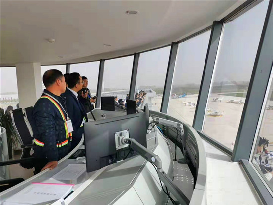 10月29日上午,周口西華通用機(jī)場正式啟用。在機(jī)場工作人員的帶領(lǐng)下,記者來到機(jī)場運(yùn)行中心塔臺。塔臺可以環(huán)視機(jī)場全貌。機(jī)場運(yùn)行中心是機(jī)場指揮運(yùn)行的中樞,對空指揮系統(tǒng)、氣象自動(dòng)觀測系統(tǒng)、ADS-B監(jiān)視系統(tǒng)和機(jī)場全景監(jiān)控系統(tǒng)均在運(yùn)行中心塔臺內(nèi)。