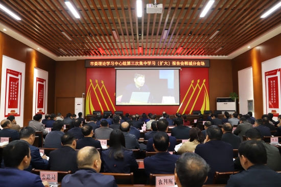 報告會擴大到市直各單位副處級以上領(lǐng)導干部。同時,利用我市遠程教育視頻會議系統(tǒng),在各縣市區(qū)和鄉(xiāng)鎮(zhèn)辦設分會場。