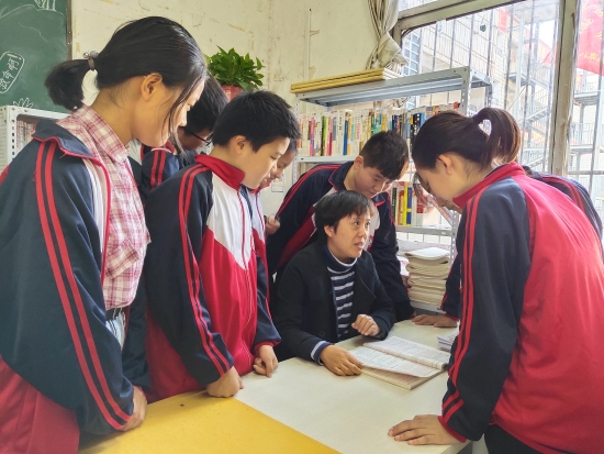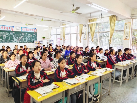 “我班的同學陽光自信、好學會學、能說會道,我們在一起交流、合作、展示,課堂變得有趣極了?!睂嶒炛袑W九年級學生張雯雯說。