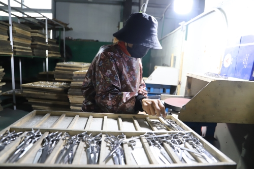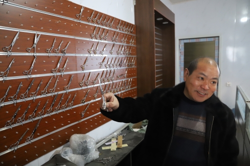 “我也是從小就外出,一直在江蘇蘇州發(fā)展,做刀剪十幾年了?,F(xiàn)在家鄉(xiāng)環(huán)境好,回來發(fā)展比在南方還有前途。”今年49歲的陳政治老家是虎崗鄉(xiāng)陳莊村。被虎崗鄉(xiāng)黨委政府的誠意所感動,他很樂意回鄉(xiāng)發(fā)展,因為房租價格低、務工人員穩(wěn)定,營商環(huán)境又好,所以他帶著自己的外甥楊亞杰和技術團隊回到老家鄲城,還能助力家鄉(xiāng)經(jīng)濟發(fā)展。陳政治說,他的廠子所生產(chǎn)的東升、jack、亞寶等品牌刀剪全部銷往全國高檔理發(fā)店,產(chǎn)品供不應求。像這樣的高檔刀剪生產(chǎn)廠家,在中原地帶極少。剛投產(chǎn)幾個月,他已經(jīng)接到了來自韓國、日本等地的訂單。