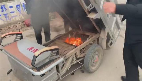 由于方便快捷,現(xiàn)在電動(dòng)車已經(jīng)成了很多市民出行的主要交通工具。但是,在沒有滅火器的情況下,一旦遇到電動(dòng)車電瓶短路著火該怎么辦?近日,周口消防救援支隊(duì)淮陽大隊(duì)淮周路中隊(duì)的三名消防隊(duì)員鄧碩宇、劉小龍、王世繼在輪休回家途中突遇一輛電動(dòng)三輪車冒起了黑煙,三名隊(duì)員迅速趕上前去查看情況并當(dāng)機(jī)立斷利用周圍泥土僅用幾十秒的時(shí)間就消除了火情。