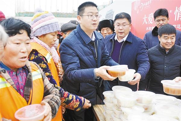 1月2日上午,商水縣在城區(qū)6處人流集中的地方設(shè)立免費送粥點,1000多碗臘八粥香飄四處,溫暖全城。圖為臘八粥發(fā)放現(xiàn)場。記者 付永奇 攝