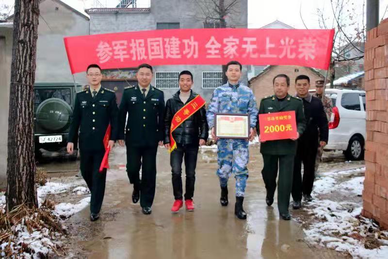 就在這樣一個(gè)瑞雪初降喜盼豐年的日子,穆店鄉(xiāng)四大王村熱鬧非凡。鹿邑縣人武部、退役軍人事務(wù)局、穆店鄉(xiāng)政府帶領(lǐng)96766部隊(duì)人員,專程來到從該村入伍的三級(jí)士官李龍家中,送上三等功喜報(bào)和慰問金。面對(duì)鄉(xiāng)親們羨慕的目光,李龍的母親陳秀英興高采烈地說:“俺要叮囑兒子繼續(xù)在部隊(duì)好好干,爭(zhēng)取再立新功!”