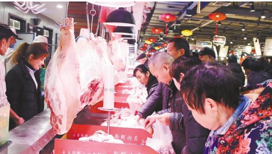 1月18日上午,在中心城區(qū)萬果園超市內(nèi)的2020年春節(jié)政府平價(jià)豬肉專柜前,擠滿了購買豬肉的市民。春節(jié)將至,為保障節(jié)日市場(chǎng)供應(yīng),我市從1月17日至23日的早上9時(shí)至下午4時(shí)在中心城區(qū)20家超市將投放300噸應(yīng)急保障協(xié)議豬肉,供市民購買。