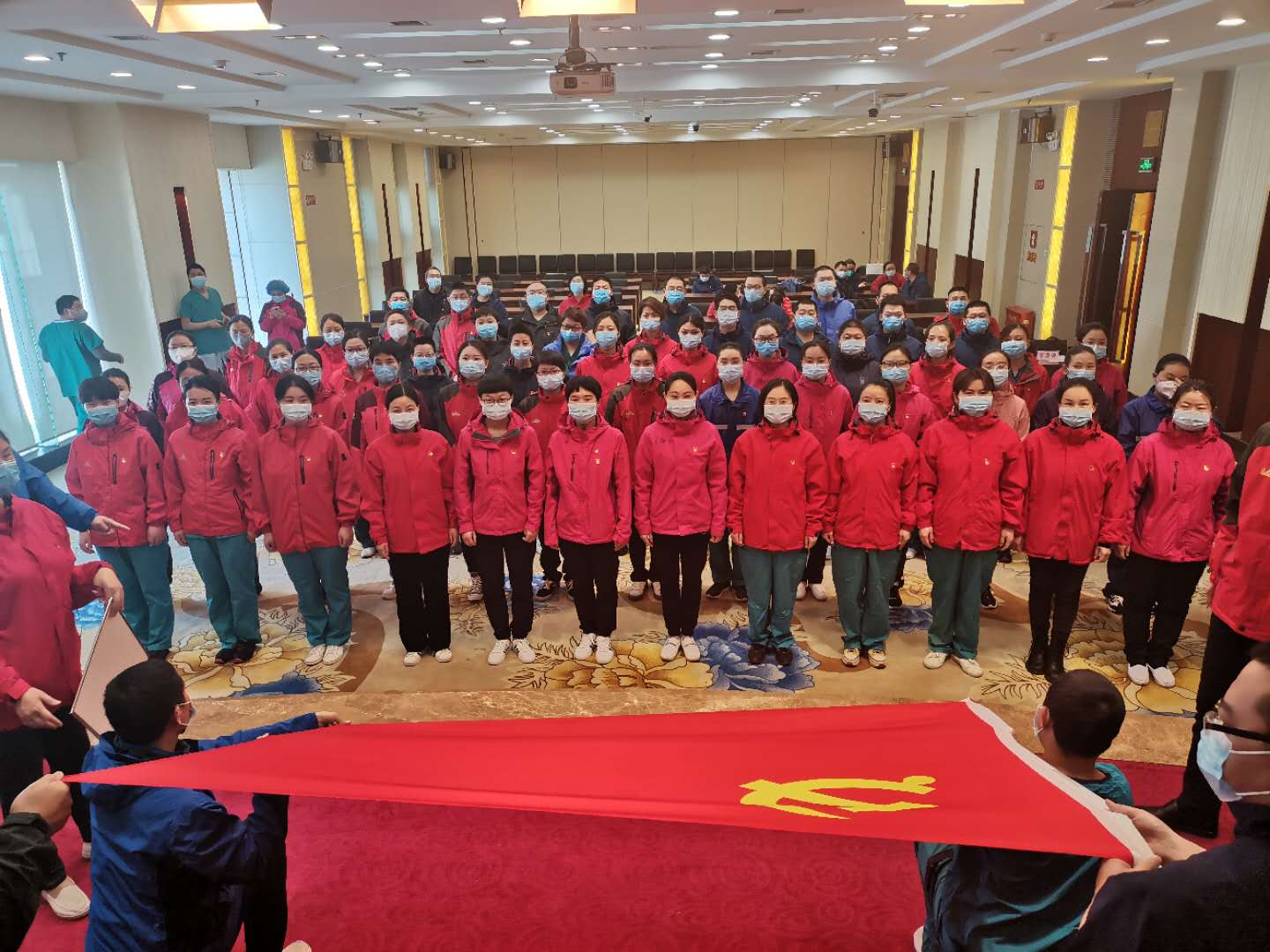 3月19日,周口援鄂醫(yī)療隊(duì)周口市中心醫(yī)院祁文麗、徐貴琴、解玉東、王亞麗、王玉才、王冰清6名隊(duì)員,站在鮮紅的黨旗面前莊嚴(yán)宣誓志愿加入中國共產(chǎn)黨。