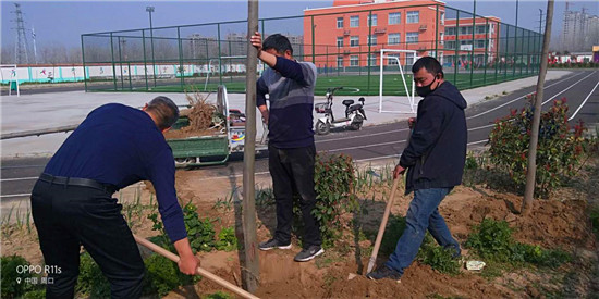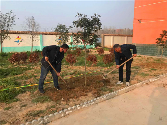 蔣莊小學(xué)地處革命老區(qū)西華縣城邊沿,是一所新建學(xué)校,植樹(shù)空間很大。每年植樹(shù)節(jié),該校都要組織師生栽樹(shù),開(kāi)展“植樹(shù)造林、綠化校園”活動(dòng),學(xué)校植樹(shù)多、環(huán)境優(yōu)美,已經(jīng)被西華縣命名為“綠化達(dá)標(biāo)校園”。今年植樹(shù)遭遇了意想不到的新冠肺炎疫情,組織學(xué)生植樹(shù)危險(xiǎn)性極大。為保證師生身體健康和生命安全,該校組織老師分期、分批、分片,戴著口罩單獨(dú)作業(yè)、單獨(dú)植樹(shù),防止病毒交叉感染。